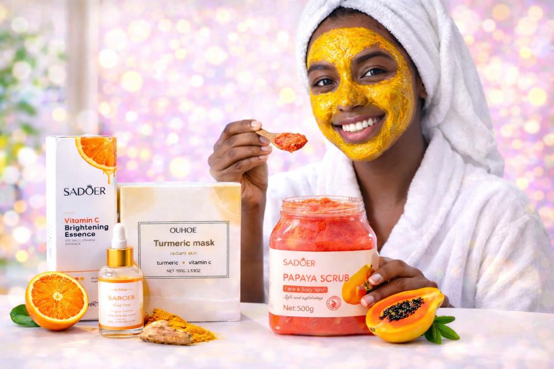 Honestly, I’ve battled with dark spots and uneven skin for years, and it really affected my confidence. Before using this set, my face looked dull and tired no matter what I tried. But after consistently using the turmeric mask, serum, and body scrub, my skin started changing within 2 weeks. Now my face is brighter, smoother, and my dark spots have faded so much. Even my friends keep asking what I’m using!”